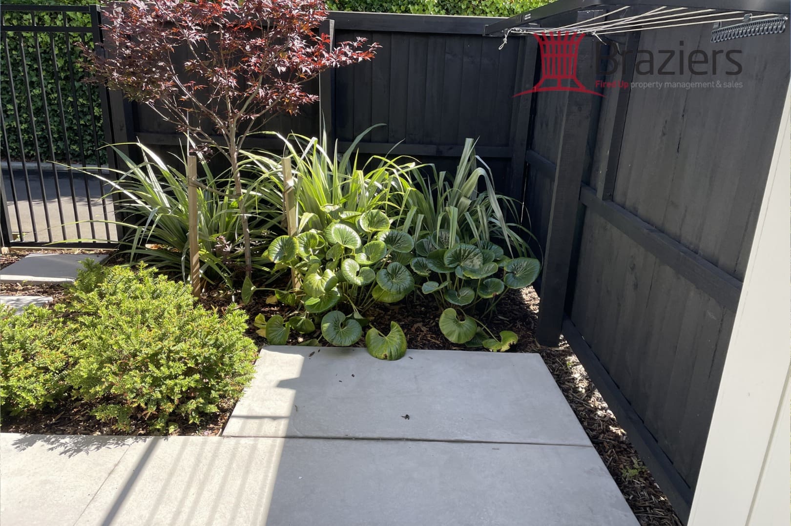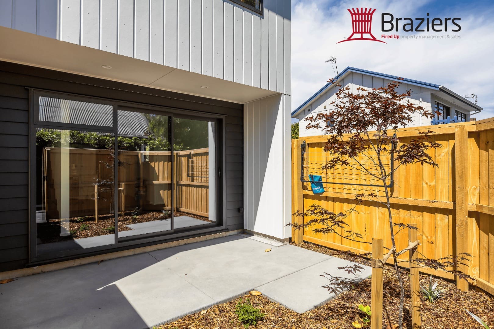 – Private front courtyard with secure gate and gardening is included.
