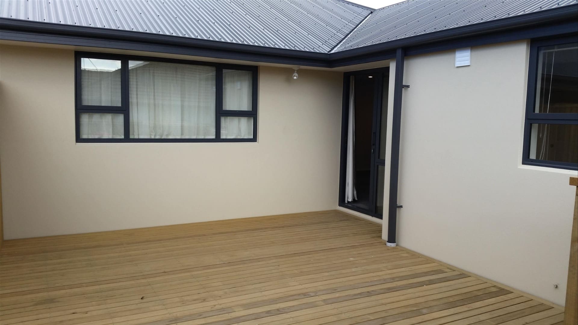 – Good size open plan living with heat pump that opens onto terrace.