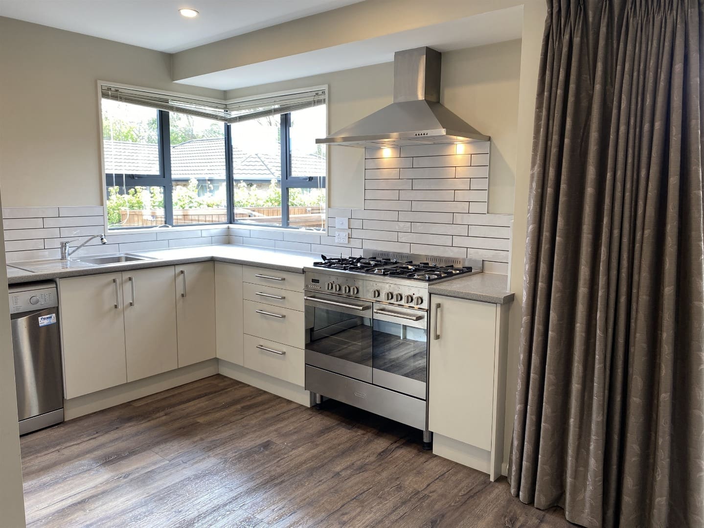 – Kitchen with 900mm gas hobs and electric double oven, dishwasher, extractor fan and