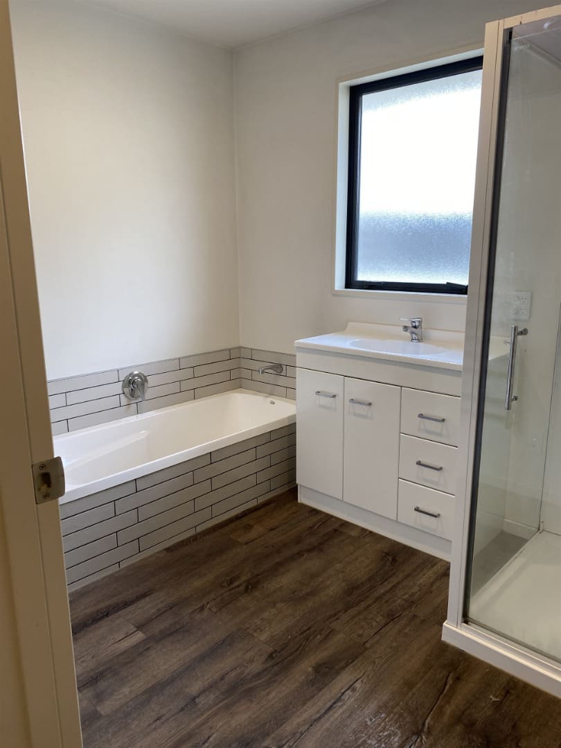 – Full bathroom with shower, bath, vanity, heated towel rail and extractor fan.