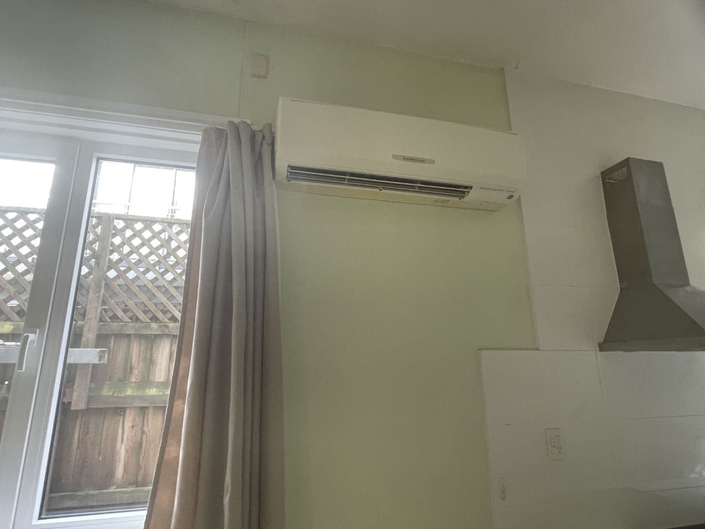 – Spacious unit with open plan living and kitchen area heated by heat pump.