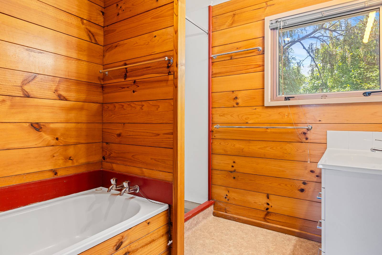The main bathroom upstairs has a separate shower, bath, and vanity. Separate toilet. Downstairs is a second shower in the laundry area with external access to the rear and separate toilet.