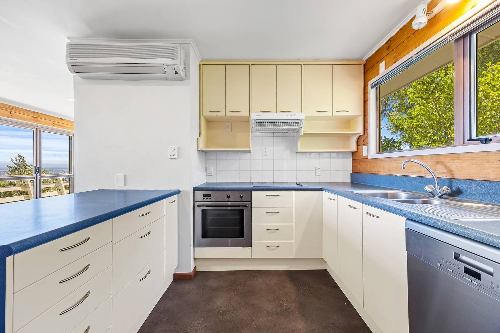 Spacious and sunny lounge with large windows and ranch-slider to balcony and stunning views. The kitchen has an under-bench oven, electric hobs, rangehood, and dishwasher. Plenty of bench space and space for the dining room table.