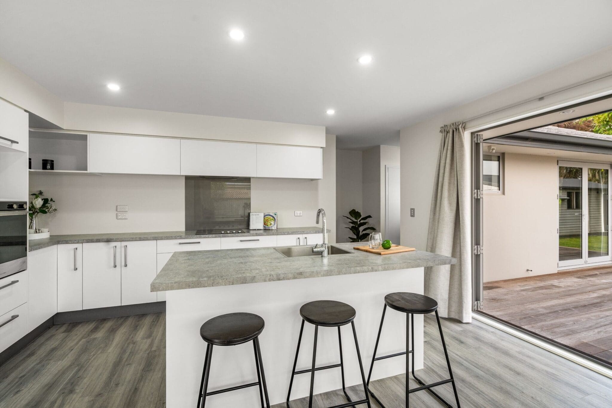 An open, light-filled kitchen/diner with island and extensive bench space makes for a superb family space and Heart of the Home with French Doors opening onto two hardwood decks. A second living room with its own heatpump also has French doors onto the largest of the two decks, the connection to the garden and outdoor living space is terrific. We talk about Flow a great deal and this has it in spadefuls!