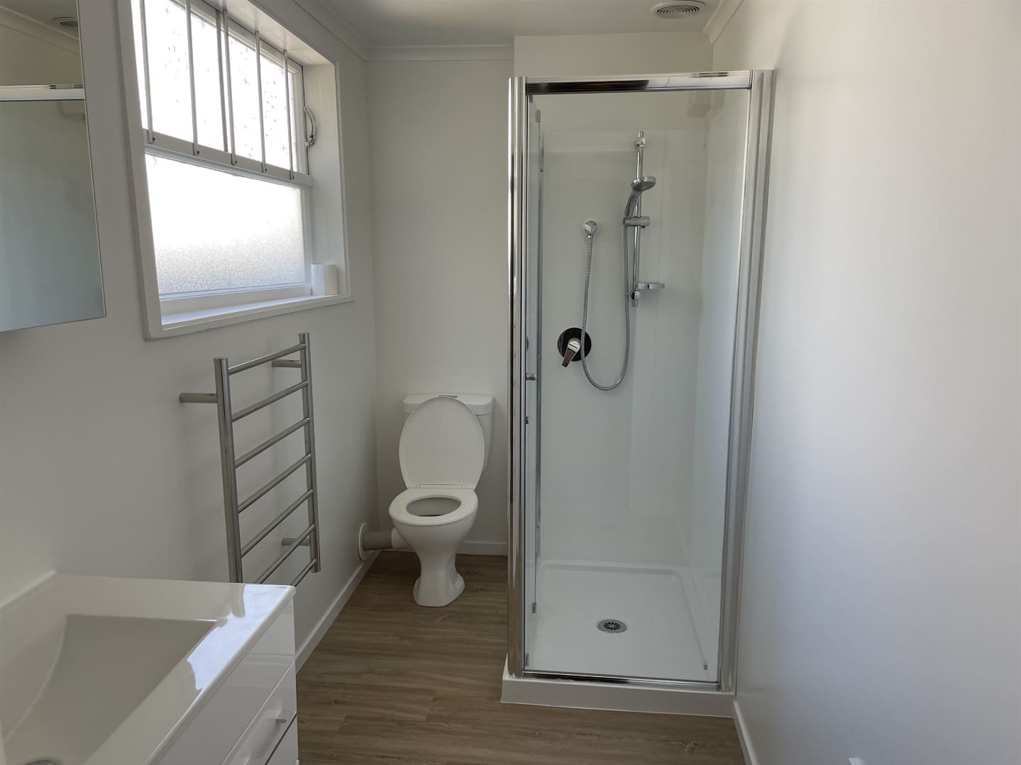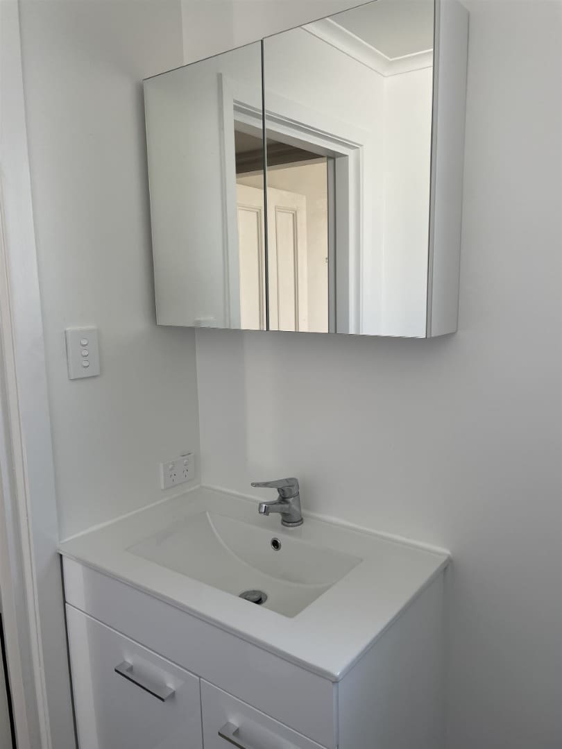 – Refurbished bathroom with shower, toilet, vanity.